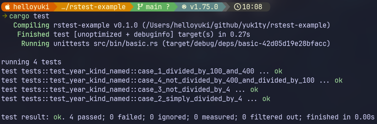 rstestで上述のテストを書き直すと次のようになります。